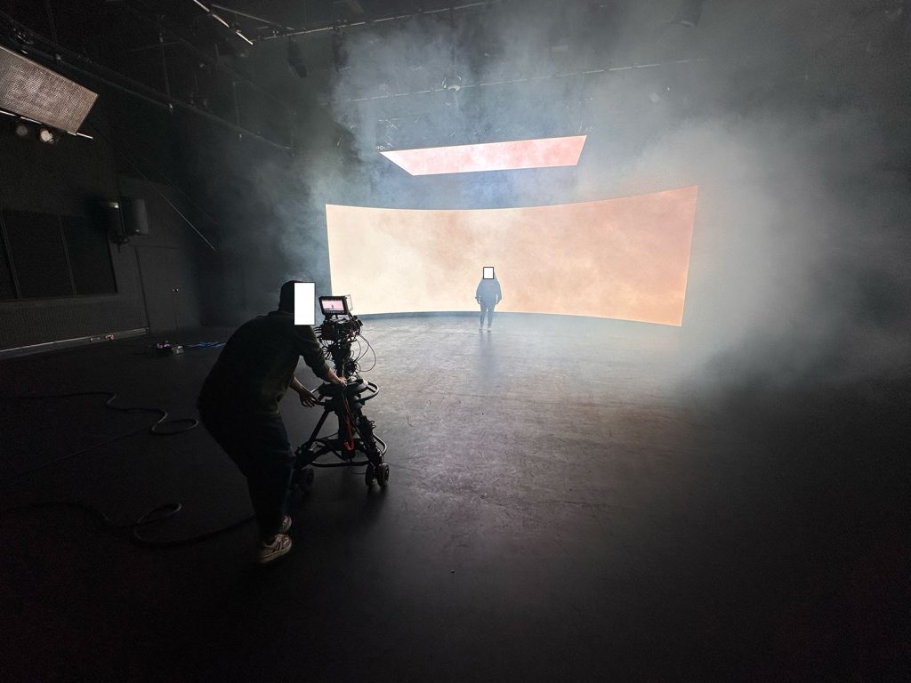 The second part was to setup a pure white background and assist with filming bodies in front of the screen with smoke blown in fron to produce a piece of film that could be tested for colour grading to create a Blade Runner 2049 feel.