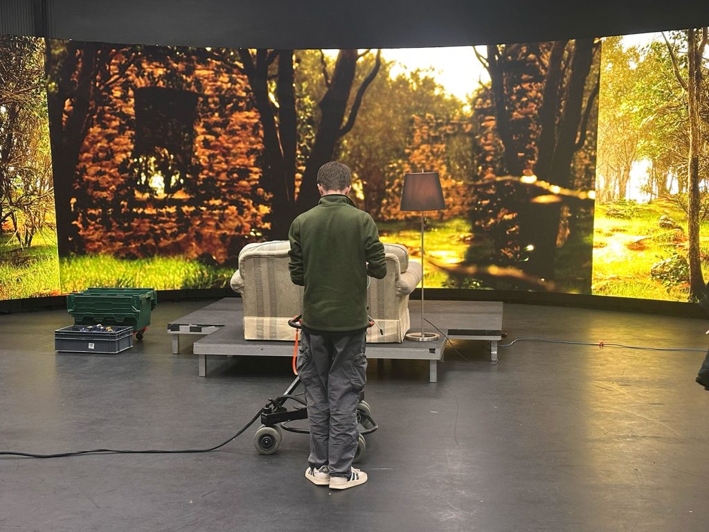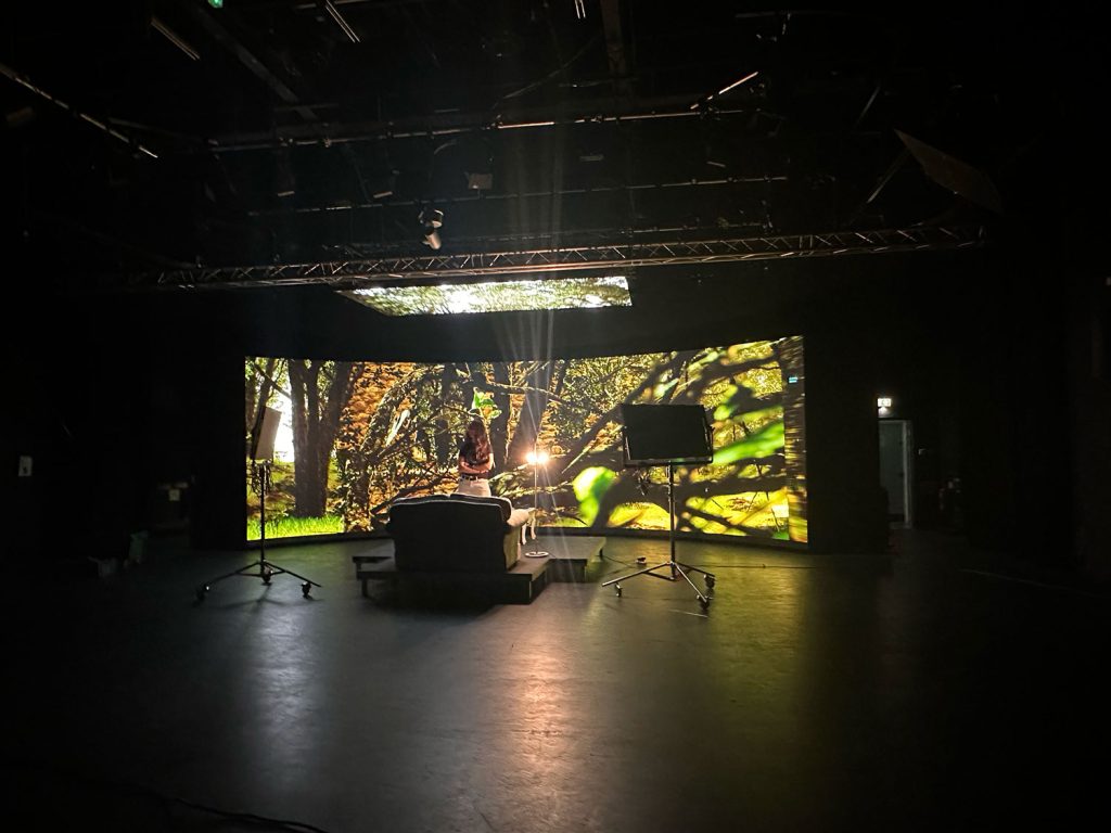 This filming day was assisiting on another project with a new environment built in Unreal Engine with a staged scene in front. Starting off filming the actor in front of the environment then tracking back with the camera to expose the use of the stage.